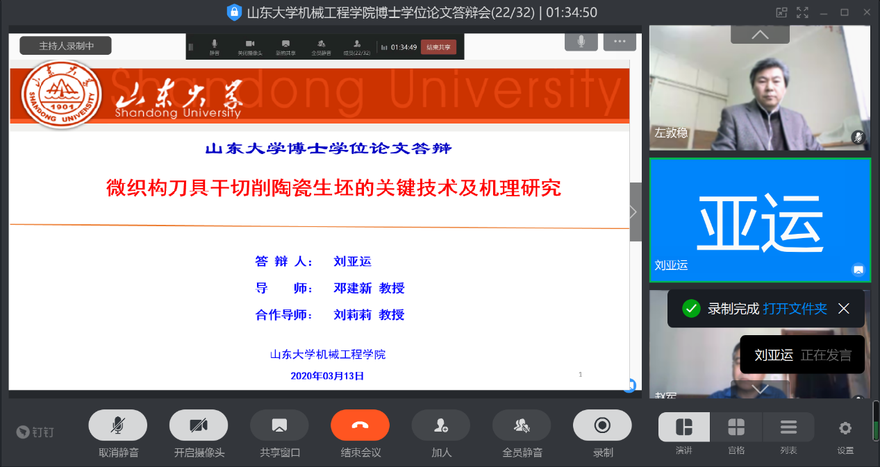 机械工程学位分委员会于3月23日召开了视频会议,开展了学位审核工作。分会委员采用线上无记名投票方式对是否建议授予学位和博士学位论文等级分别进行了表决,结果通过了全部6名博士研究生和2名硕士研究生的申请,建议授予学位。经过校学位评定委员会审议及公示后,已决定授予我院6名博士研究生和2名硕士研究生学位。