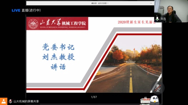 刘杰书记在讲话中围绕着大学生树立正确的人生观、世界观、价值观的重要性,情真意切的提出七点希望与家长们共勉。她强调,大学期间,是三观形成的重要时期,所以在如此重要的三观树立和形成的阶段,还需要家长们积极配合学院,在帮助他们学会自立的同时,继续关心关注孩子们在大学里的学习和生活。她指出,每个孩子都有无限的可能,把孩子培养成幸福快乐、全面发展的青年人才是学院和家长共同的心愿。最后她结合学校疫情防控管理的需要,提出了具体要求,希望家长理解和配合好学校教育管理工作。