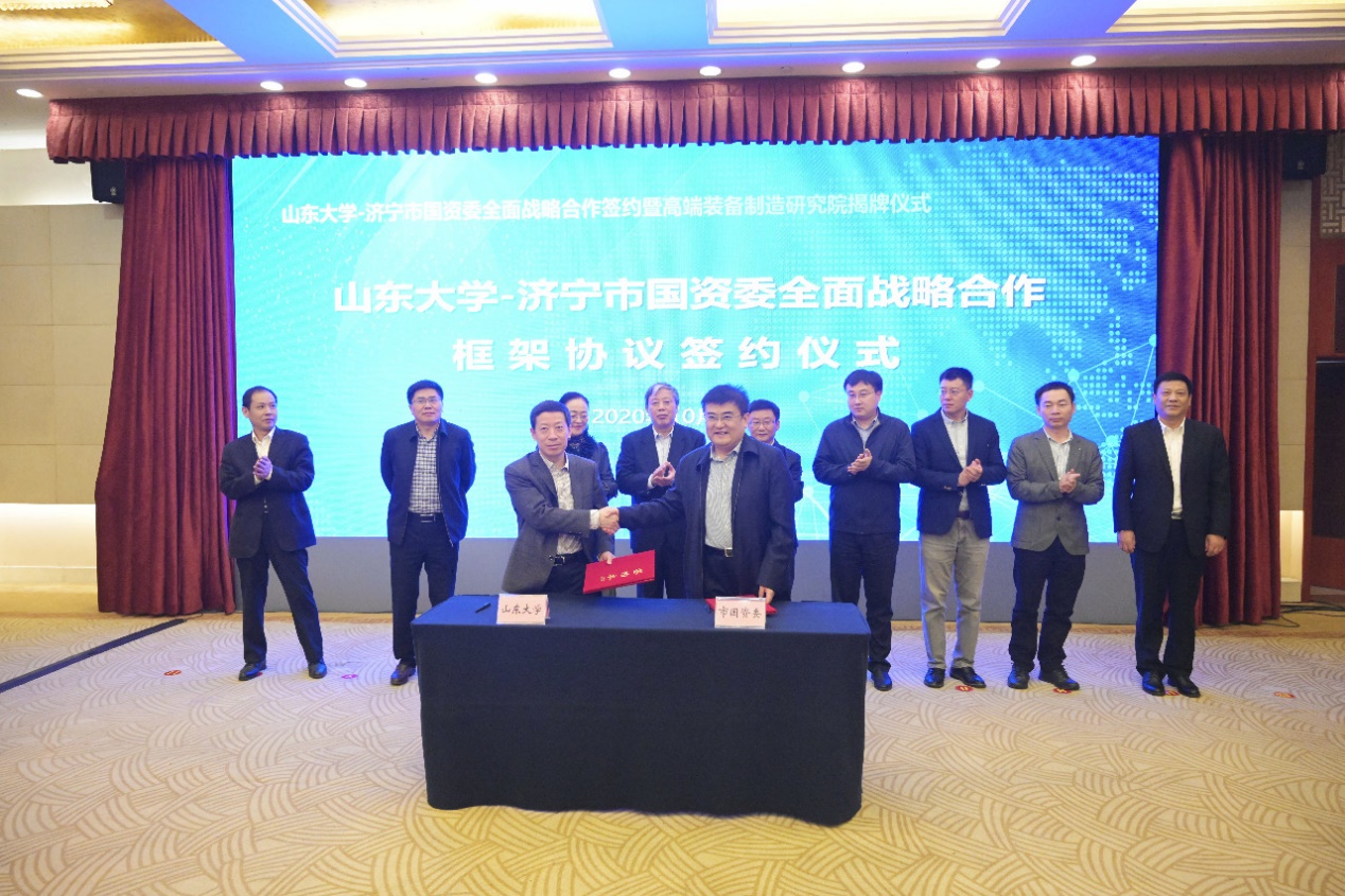 10月27日,澳门十大信誉好的网站—济宁市国资委全面战略合作签约暨高端装备制造研究院揭牌仪式在圣都国际会议中心隆重举行。澳门十大信誉好的网站党委副书记仝兴华,济宁市委常委、常务副市长田和友,济宁市国资委党委书记、主任丰家雷出席,澳门十大信誉好的网站院长黄传真、党委书记刘杰参加。济宁市政府副秘书长、办公室主任马树华主持签约揭牌仪式。