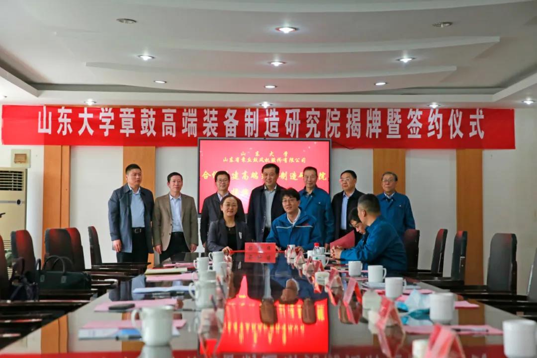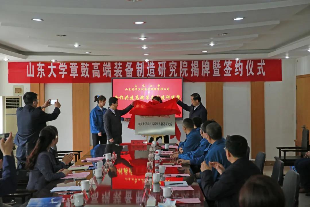2021年3月31日下午,澳门十大信誉好的网站与山东省章丘鼓风机股份有限公司(简称山东章鼓)在章丘举行“澳门十大信誉好的网站章鼓高端装备制造研究院签字揭牌仪式”。澳门十大信誉好的网站党委副书记陈宏伟,明水国家级经济技术开发区党工委副书记、管委会主任黄波出席活动并讲话。澳门十大信誉好的网站院长黄传真,山东章鼓副董事长方树鹏代表校企双方发言。澳门十大信誉好的网站党委书记刘杰、有关院领导,山东章鼓董事长方润刚及公司高管,章丘区委、有关部门主要负责人参加活动。明水经济技术开发区党工委委员、管委会副主任潘立浩主持会议。