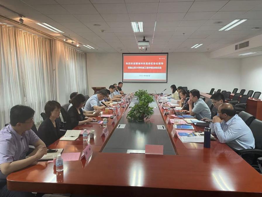魏雷介绍了东昌府区的情况,他指出,聊城东昌府区是全国综合实力百强区、全国科技创新百强区、全国投资潜力百强区,也是闻名遐迩的中国“江北水城·运河古都”,经济实力雄厚,近年来东昌府区经济布局和经济结构不断优化,当地的汽车零部件、精品钢管、新能源汽车和轴承保持器等厂家在政府的谋划整合下不断焕发新活力,希望下一步能够与机械学院充分挖掘合作潜力,建立合作机制。孟凡志同志简要介绍了当地地方企业的整体规模、近年发展趋势、后续地方企业的整体规划方向等情况;东昌府区政府科技局李明艳同志以及政府组织部(人才办)卢宪慧同志分别简要介绍了当地在高端人才、高新技术、科研成果转化的需求以及东昌府区政府近年来在高端人才引进培养的主要实施措施、优势政策等情况。