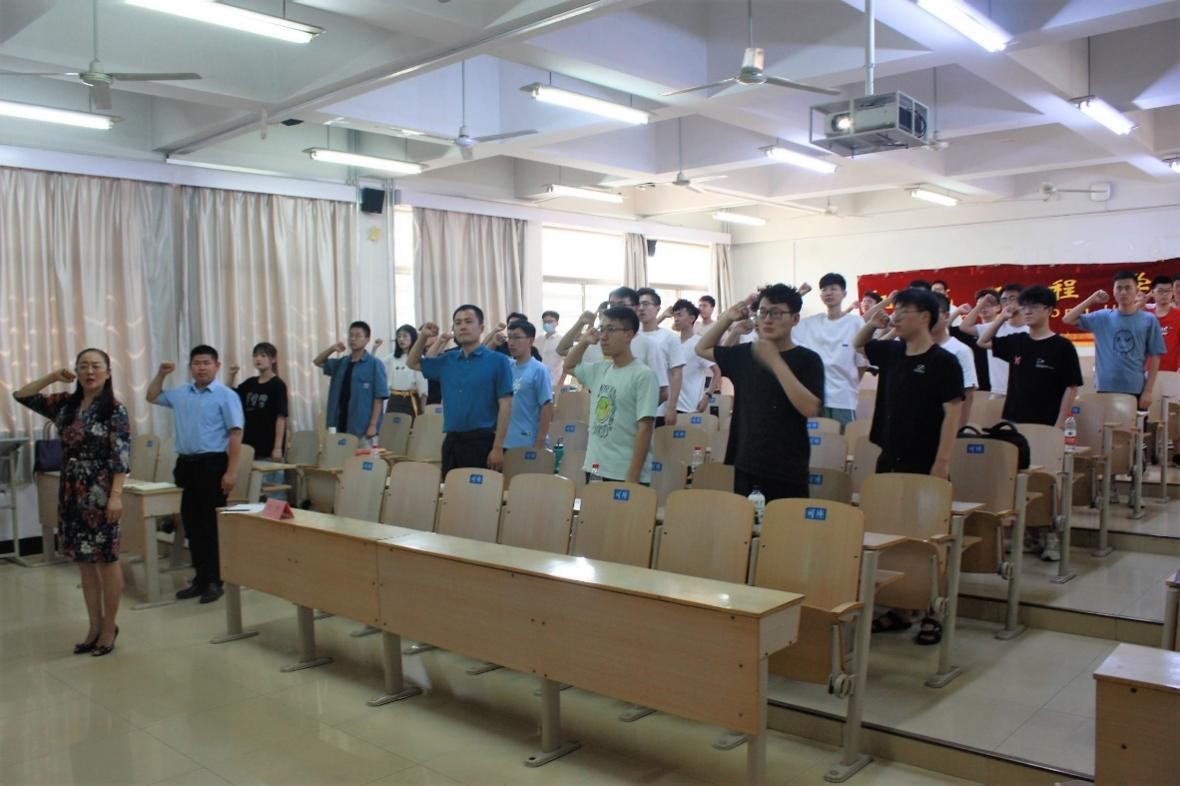 党课最后,刘杰书记带领全体党员同志面向党旗重温入党誓词,铿锵有力的宣誓声响彻全场。