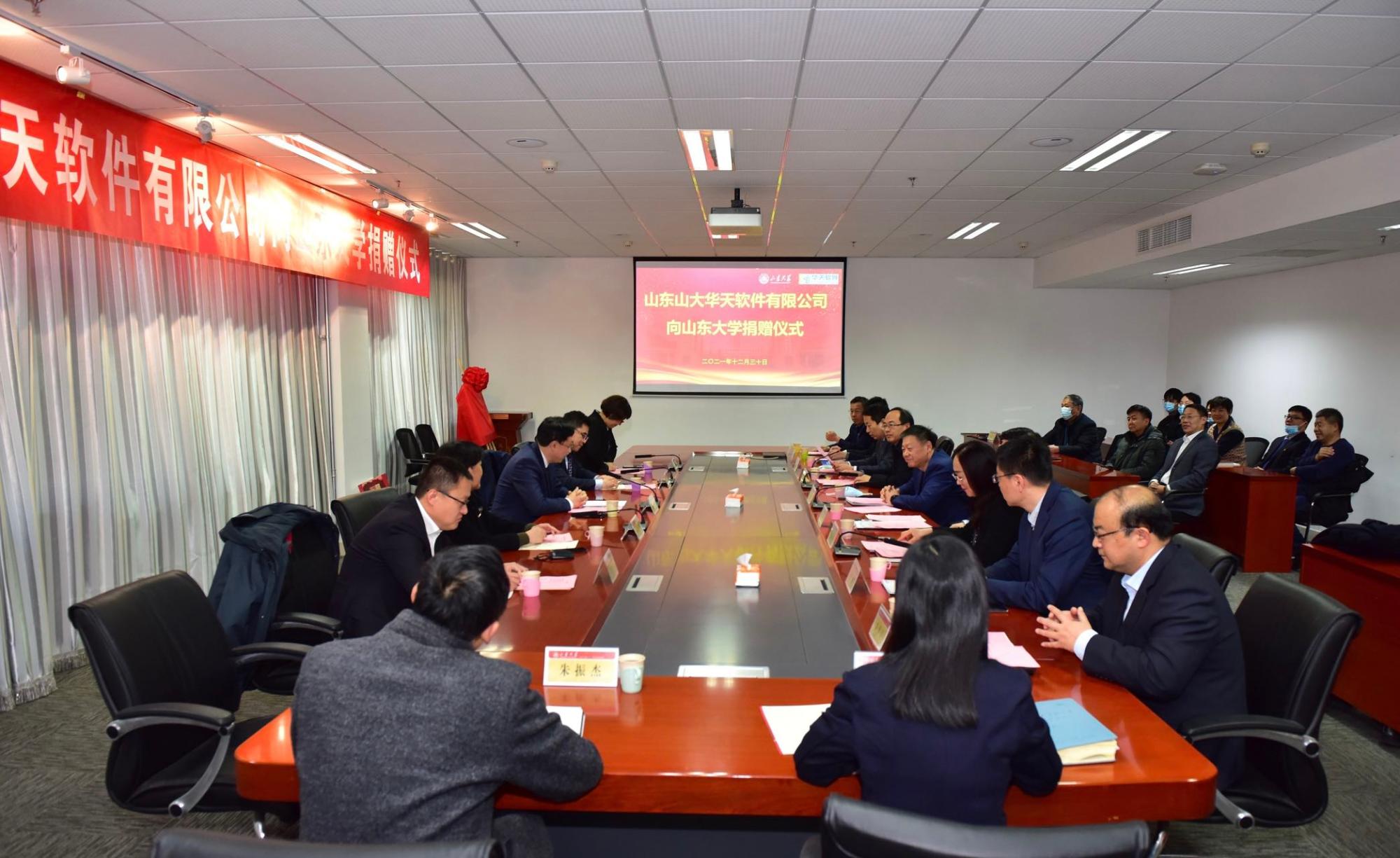 山东山大华天软件有限公司总裁刘军,人力资源总监田裕惠,总裁助理屈亚宁、魏威,澳门十大信誉好的网站合作发展部部长王飞,本科生院副院长姜兆亮,澳门十大信誉好的网站班子成员,CAD/CAM研究所、实验中心等老师和研究生等40余人参加捐赠仪式。仪式后,学院举行了座谈交流会。