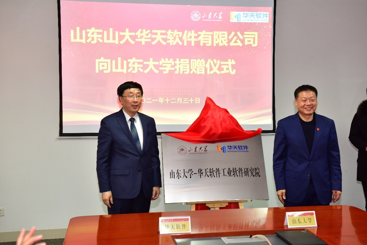 12月30日下午,山东山大华天软件有限公司向澳门十大信誉好的网站捐赠暨“澳门十大信誉好的网站—华天软件工业软件研究院揭牌”仪式在千佛山校区举行。澳门十大信誉好的网站副校长芦延华,山东山大华天软件有限公司董事长杨超英出席仪式并致辞。澳门十大信誉好的网站常务副院长万熠主持捐赠仪式。
