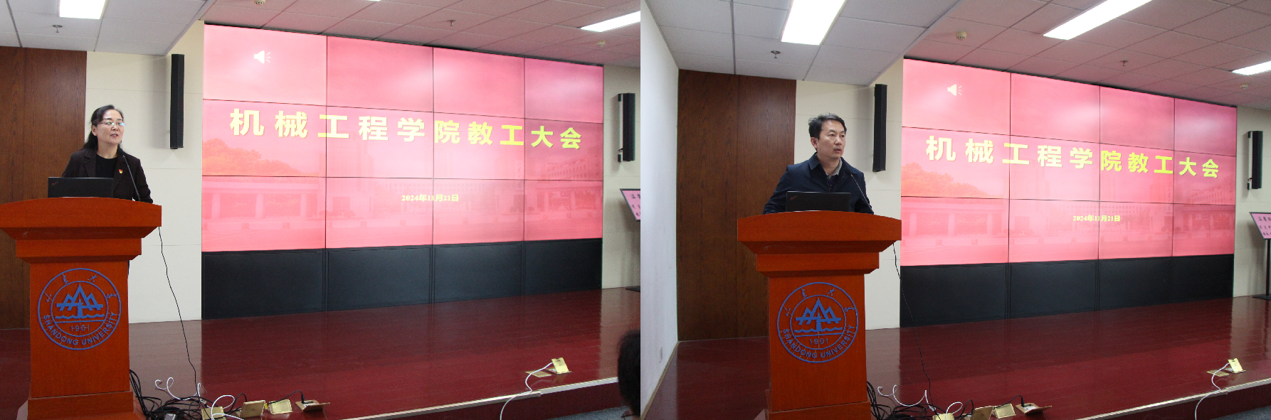 11月21日,澳门十大信誉好的网站在千佛山校区召开全院教工大会,会上传达学习了学校五届一次教代会、二十届一次工代会(下称“双代会”)精神,分析了当前学院面临的形势和挑战,部署了今后一个时期学院的重点任务。党委书记刘杰主持会议,院长万熠作了工作报告及任务部署,党委副书记滕玉军作了“双代会”精神传达。