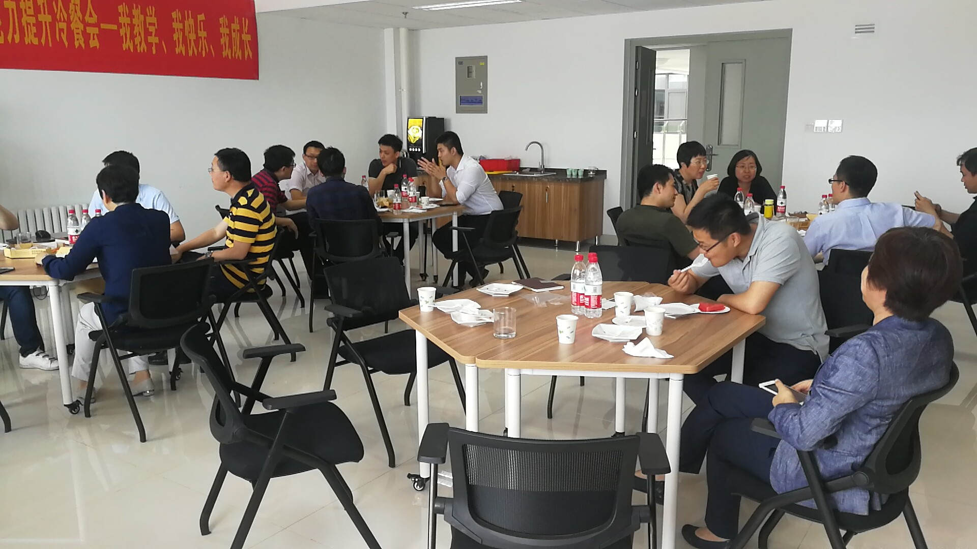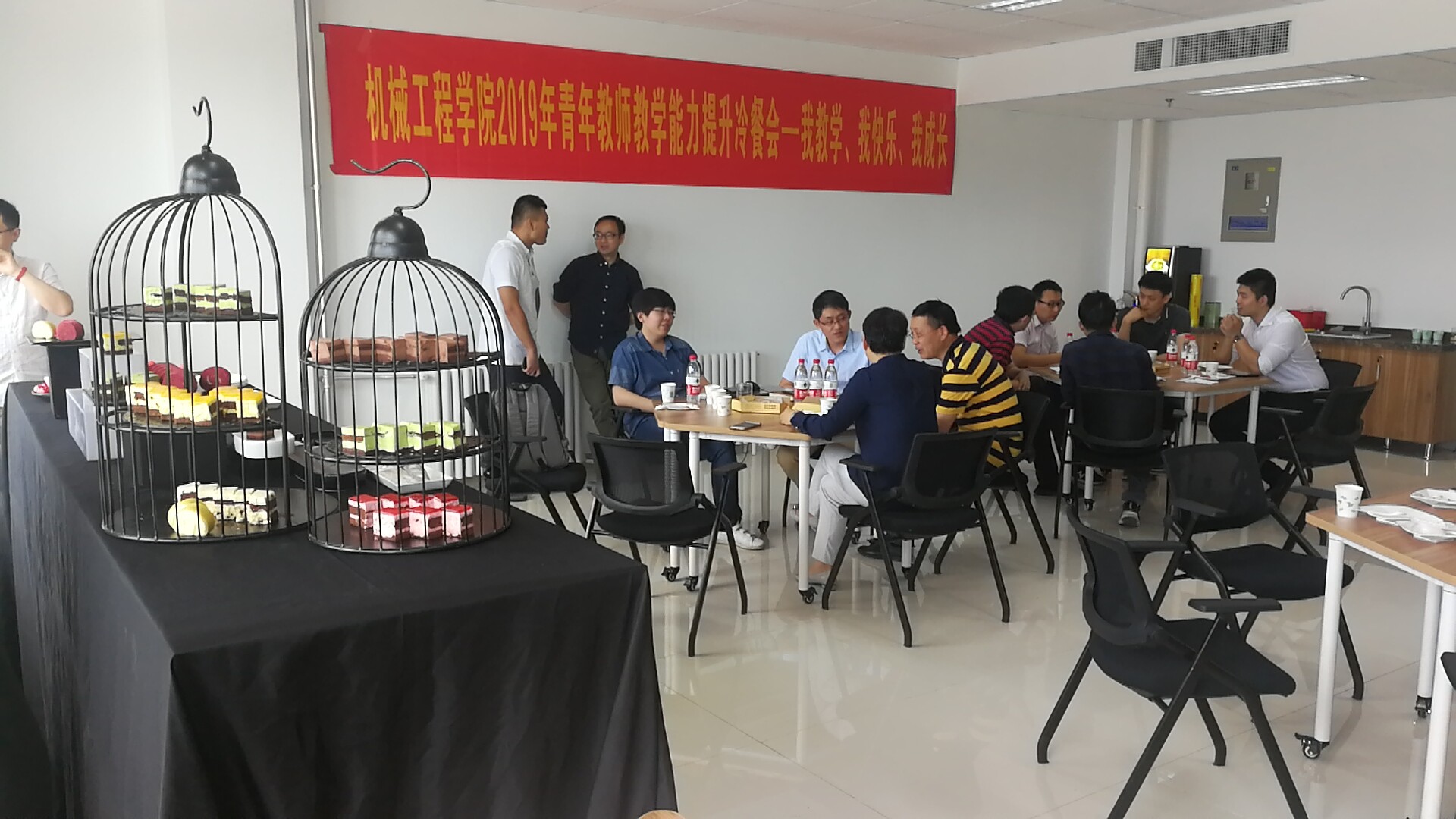 此次冷餐会在轻松愉快的环境下举行。青年教师们之间互相交流自己的经验和困惑,而具有丰富教学经验的教师前辈们则给新入职的年轻教师们答疑解惑、分享自己的教学经验,大大促进了青年教师的教学热情及能力。