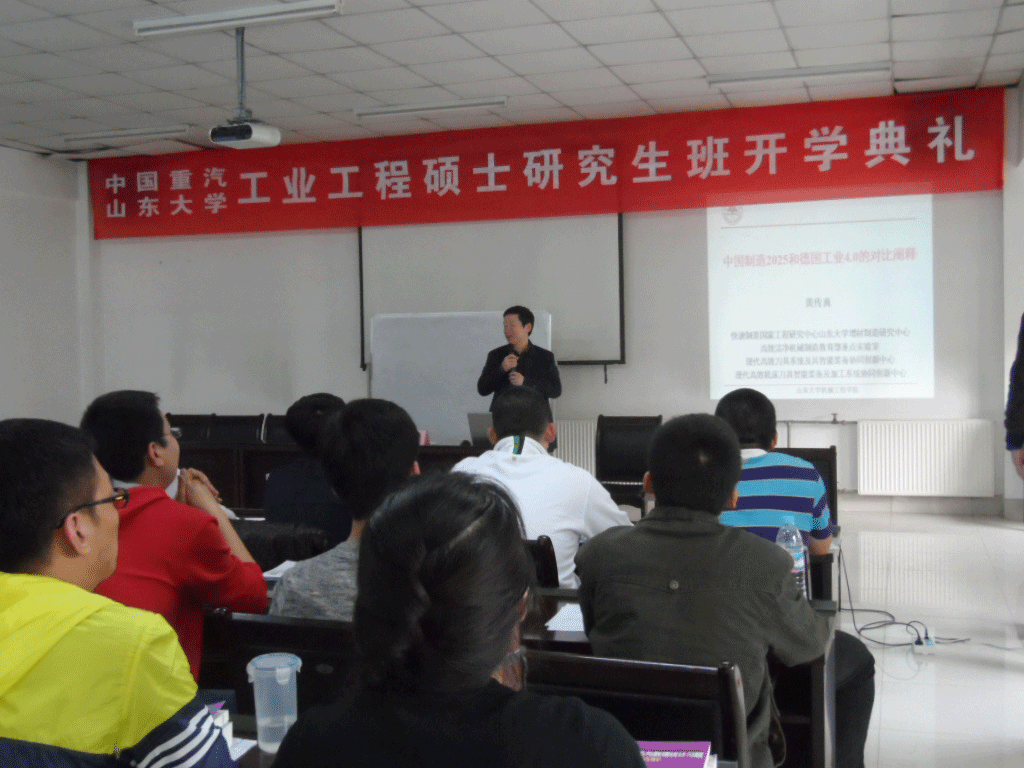 4月9日,澳门十大信誉好的网站-中国重汽2016级工程硕士班开学典礼在中国重汽集团医院办公楼会议室举行。中国重汽集团副总经理童金根,人力资源部副总经理王建华,教育部长江学者、澳门十大信誉好的网站博士生导师、澳门十大信誉好的网站院长黄传真教授,学院党委书记仇道滨教授,副书记吕伟,副院长万熠等双方负责人及工程硕士班全体学员参加了开学典礼。典礼由中国重汽集团教培中心主任韩进臣主持。
