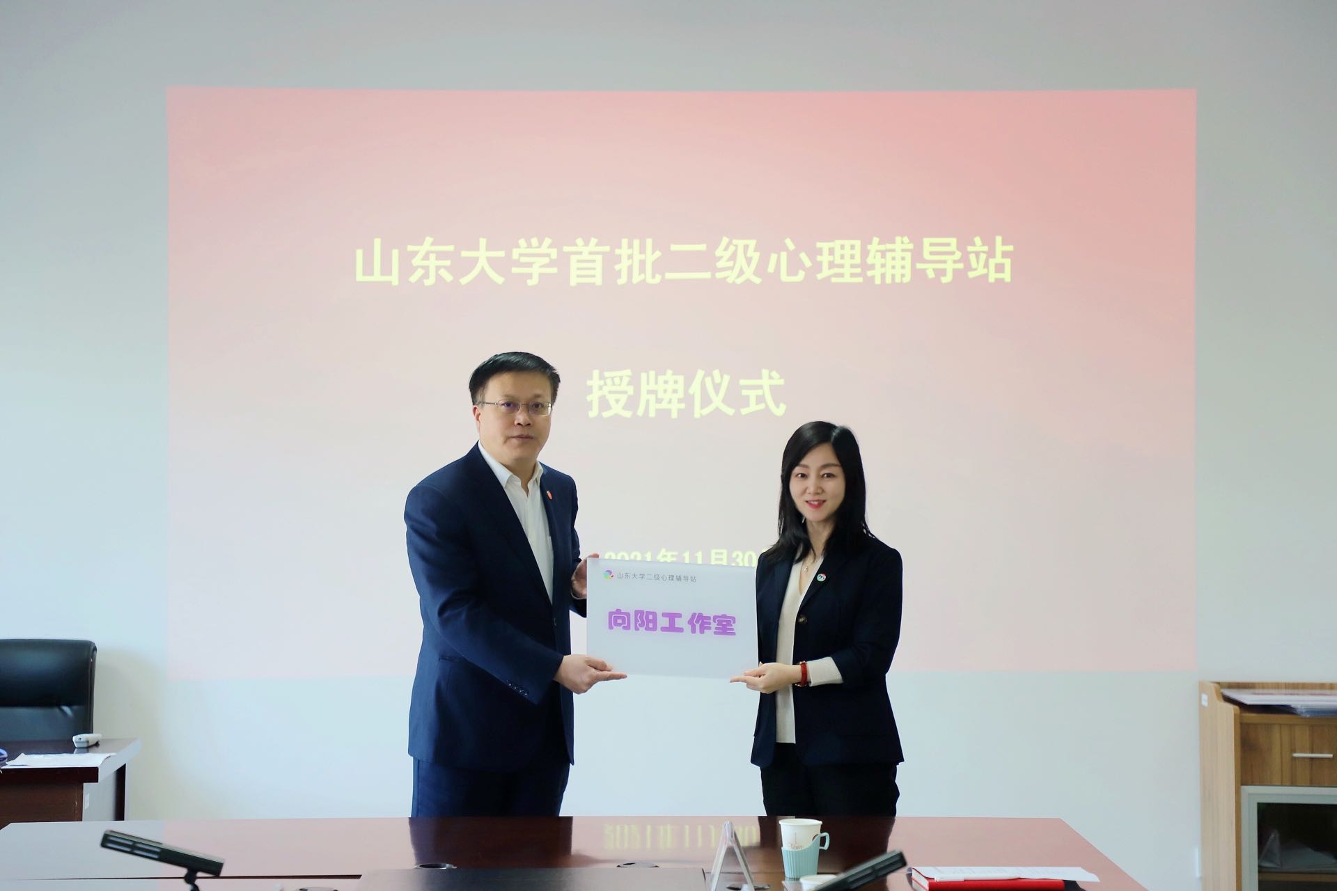 近日,澳门十大信誉好的网站首批二级心理辅导站授牌仪式在中心校区举行,校党委副书记王君松出席仪式并为获评单位授牌。经过两轮实地考察和现场答辩,澳门十大信誉好的网站“向阳工作室”获评“示范建设”辅导站。