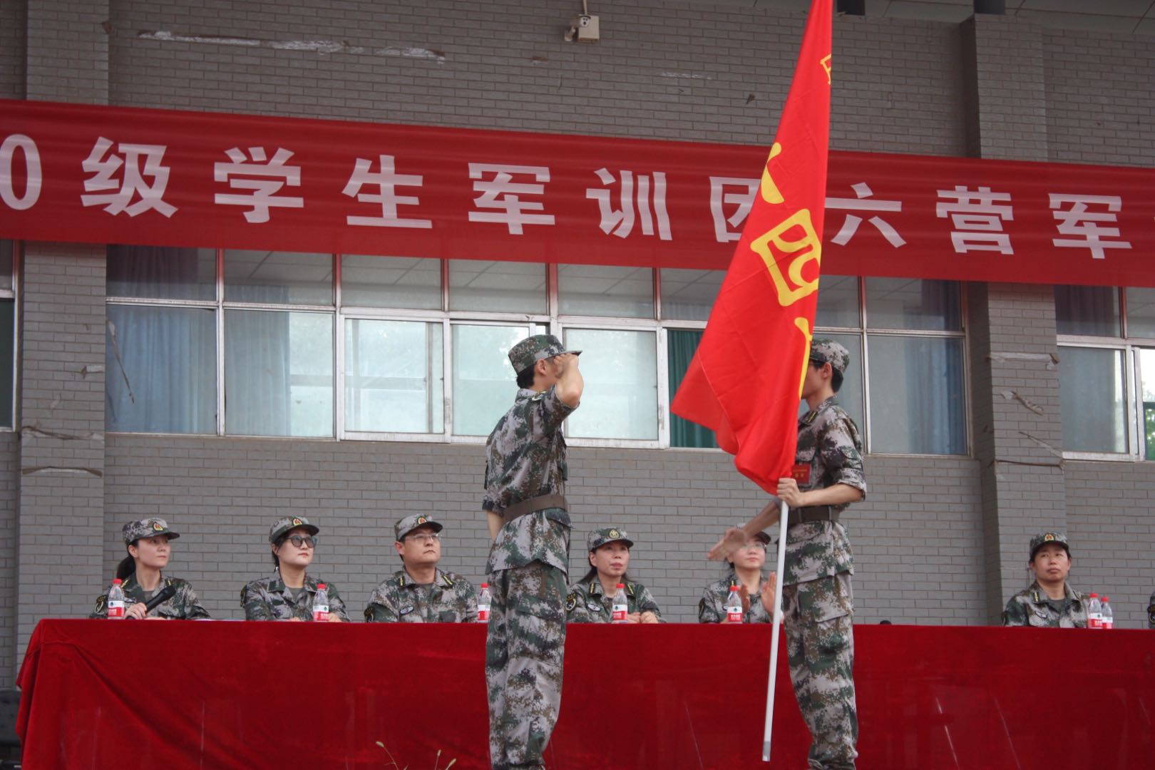 庄严肃穆的国歌奏响后,大会正式开始。军训团副政委范蕊同志宣读任命军训六营干部的决定,军训团六营营长王中华同志向各连授连旗并作军训动员讲话。他希望同学们要真正理解军训的意义,发扬军队艰苦奋斗的优良传统,以饱满的热情投入到军训中去,遇到困难不退缩,圆满完成军训任务。他指出,军训团全体教官将制定科学的训练方法,因材施教,切实提升学生的身体素质与军事素质。