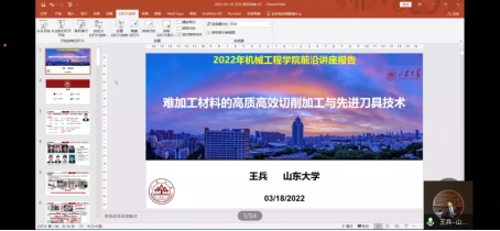 3月18日下午14:00,由澳门十大信誉好的网站举办的研究生第三期“前沿讲座”以线上的形式顺利举行。主讲人王兵教授作了题为“难加工材料的高质高效切削加工与先进刀具技术”的学术报告,部分老师和硕博研究生聆听了此次讲座。