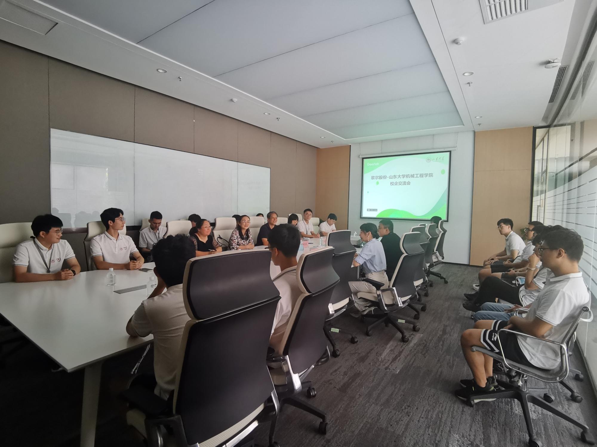 7月22日上午,澳门十大信誉好的网站党委书记刘杰、党委副书记滕玉军、辅导员刘西华、宋小霞老师再次来到潍坊高新区歌尔光电园产业园探望同学,参加了歌尔股份-澳门十大信誉好的网站校企交流会。