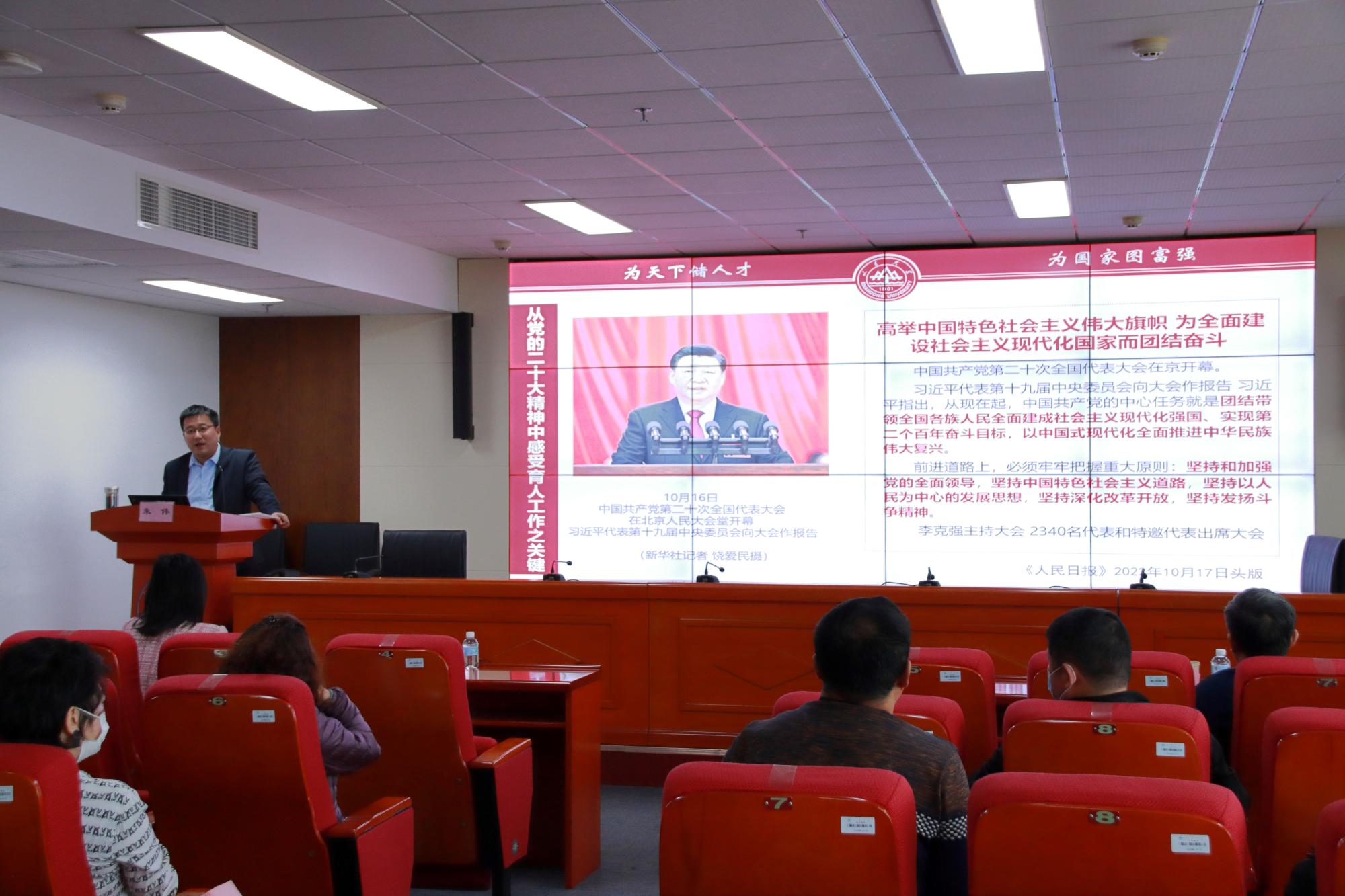 会上,朱伟以“学习贯彻党的二十大精神,切实加强班主任队伍建设,营造全员培养担当民族复兴大任时代新人的浓厚氛围”为题,从“怎么看、怎么办、怎么样”三个方面进行主题报告。朱伟表示,要从党的二十大精神、立足时代要求中感受育人工作之关键;要分析学生特点,把握工作规律,坚持因材施教,通过嵌入式、融入式、启发式工作不断提高工作成效;希望班主任到青年群体中去,心怀“国之大者”,做青年朋友的知心人、青年工作的热心人、青年群众的引路人。