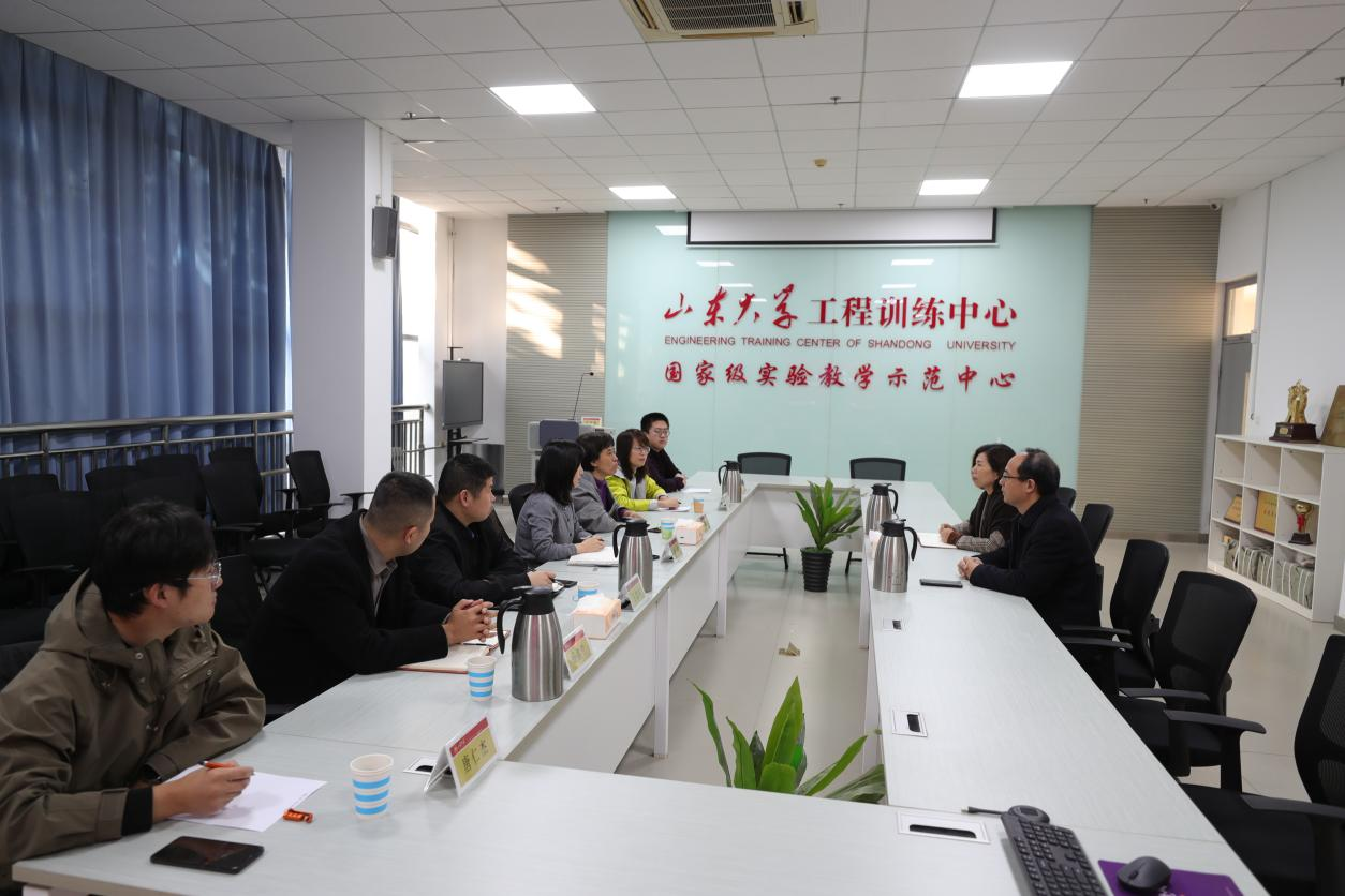 交流中,孙玉玲表示,新质生产力的核心引擎是创新,工程训练中心旨在为学生提供一线生产的环境和创新实践的平台,工训中心教学工作将与辅导员思政工作深入融合,共同深化创新实践育人,落实立德树人的根本任务,做好拔尖创新型人才的培养。姜兆亮以“五育融合的共同体,激情燃烧的迸发地”为主题,介绍了工训中心创新实践平台的基本情况,指出要通过科教资源整合、理论实践结合、实训创新融合、育人育才聚合,面向现代化强国建设,数智化赋能需求来培养高素质人才。刘玥和孙国翠分别介绍了两个工作室建设的基本情况,并对进一步深化创新实践育人的思路举措进行了交流,副处级辅导员张洁等与会人员分享了工作体会,并实地参观了工程训练中心实践平台。