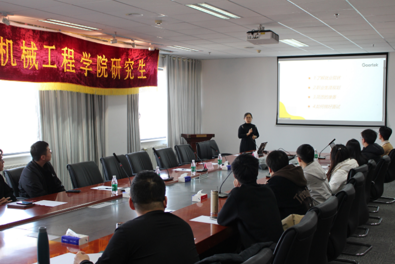 11月21日,澳门十大信誉好的网站在千佛山校区创新大厦1102室举办了“助力启航,职引未来”就业创业训练营特约活动“名企HR面对面”。本次活动邀请了歌尔股份有限公司人力资源部门的李雪经理为机械学子们讲授面试和简历写作技巧。